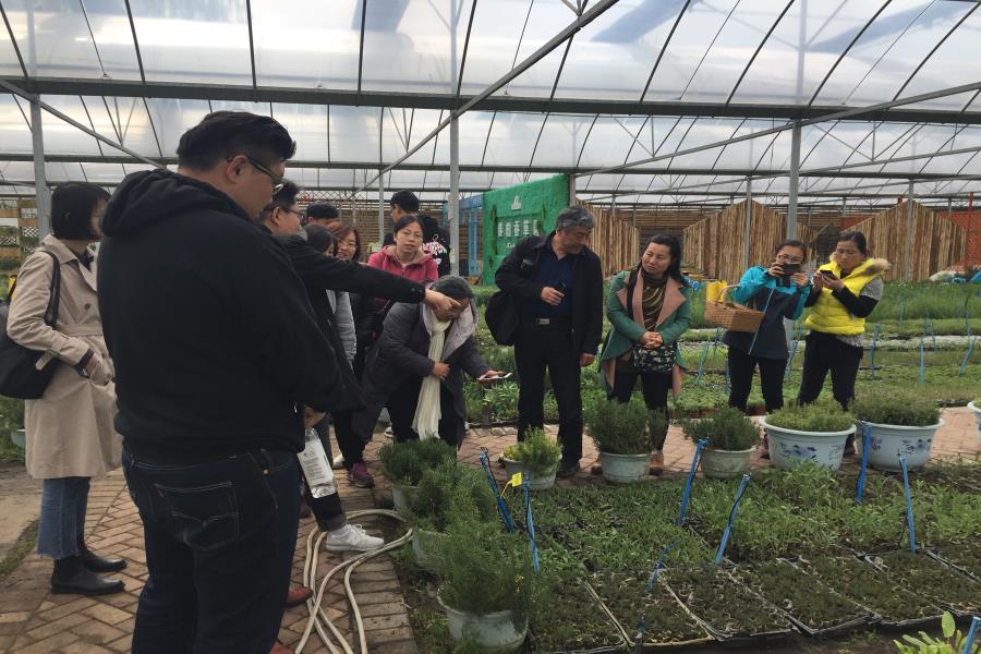 赫柏香草园总经理李崇华先生欢迎师生的来访,他介绍了赫柏香草园作为全国最大的香草育苗、技术供应商之一,由青岛百草香芳香植物有限公司投资成立,在青岛上合峰会期间也为各国嘉宾提供了正宗、新鲜、安全、品种多样的香草。春天的香草园里,草花争艳、清香阵阵,李崇华是公司当家人,用他自己的话来说,这里有一种“春夏花吐艳,秋尽骨亦香”的馨香胜境。