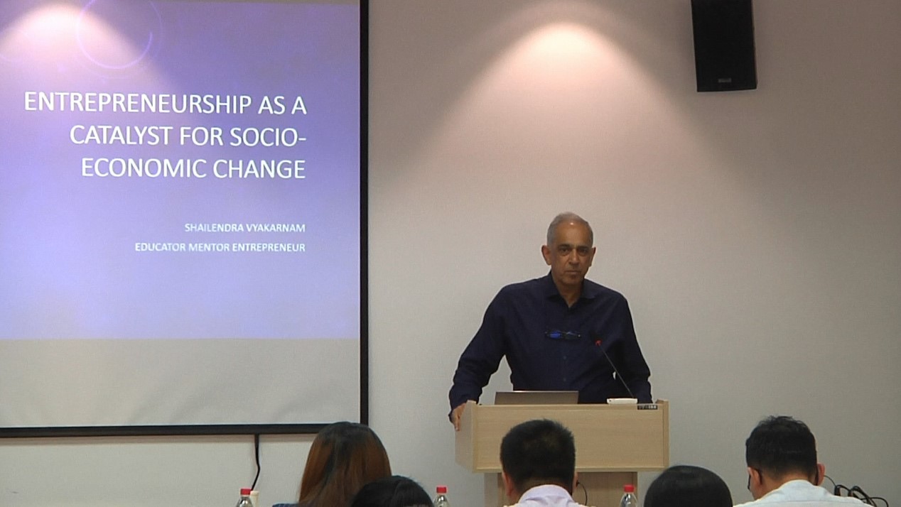 国际创新转化示范基地开展了主题为“创业推动社会经济变革”的课程培训,来自剑桥大学的Shailendra Vyakarnam教授担任主讲。
