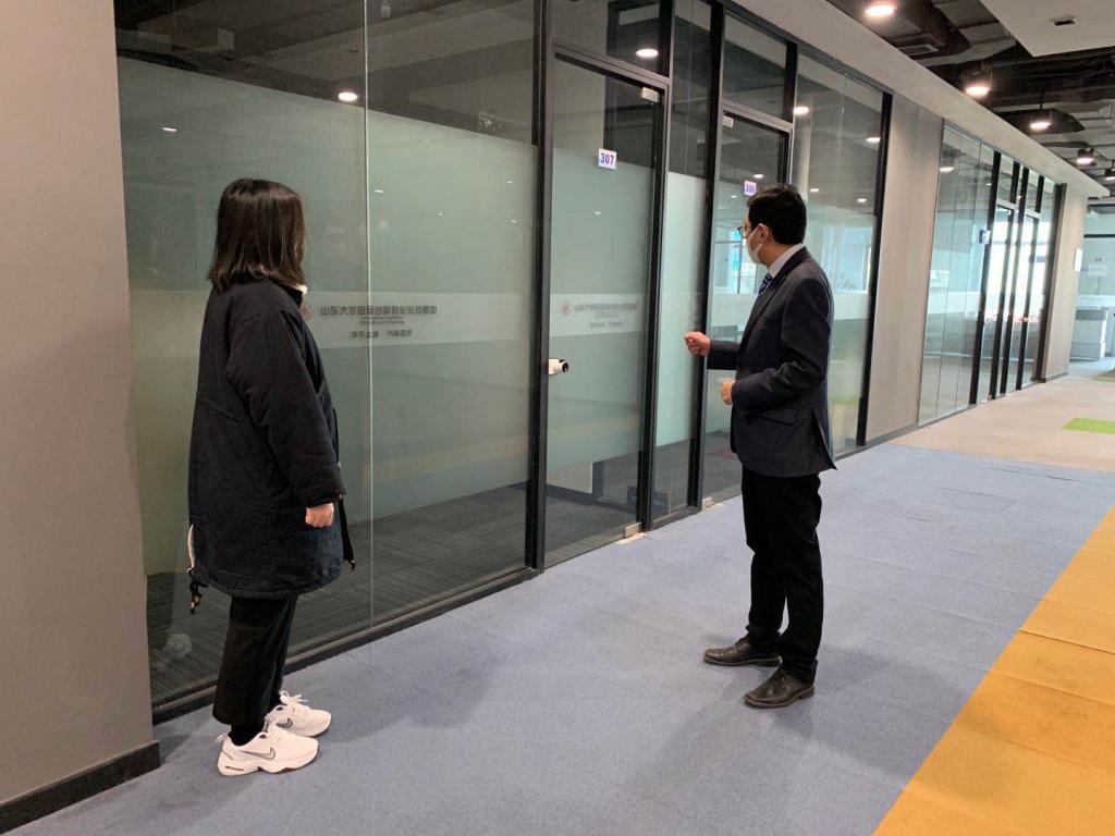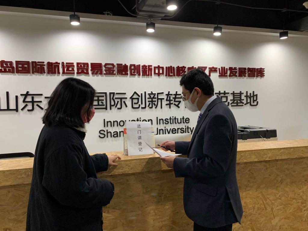 乔岳详细询问了基地疫情防控以及企业复工情况,先后对基地大厅、办公室、教室及公共办公空间等重点区域进行了检查,并查看基地访客登记表,对基地疫情防疫工作提出了新要求。