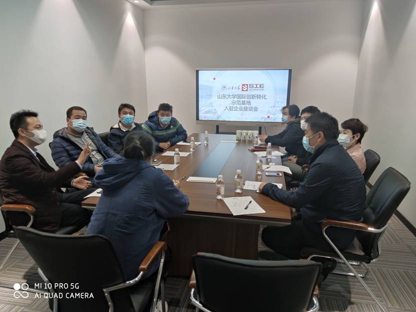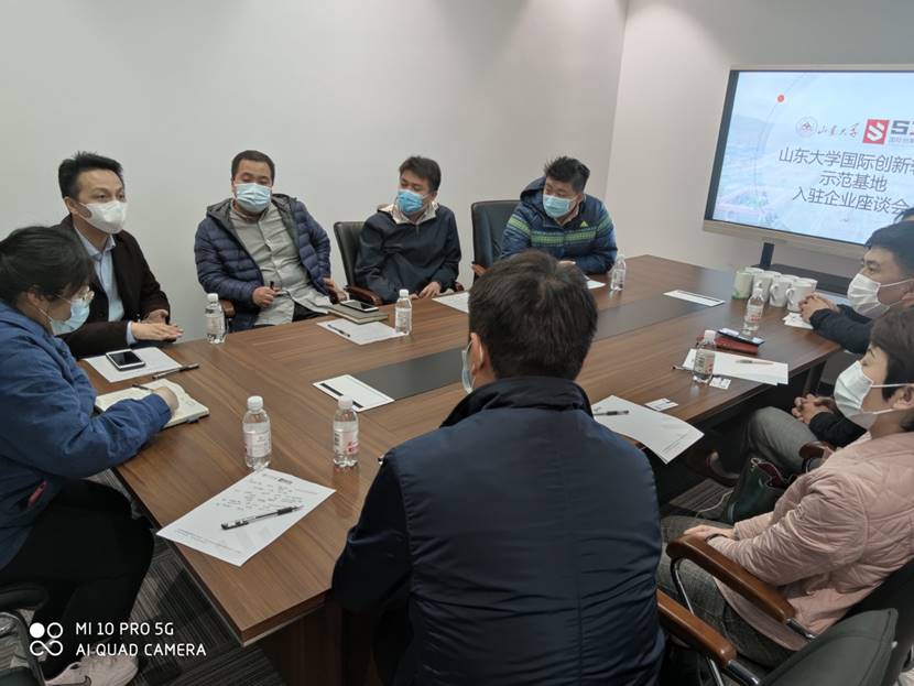 国际创新转化示范基地(以下简称基地)在会议室317举办入驻企业“面对疫情冲击,企业如何渡过难关”主题座谈会。基地主任刘振、副主任陈卓、基地各入驻企业负责人以及基地工作团队参加会议。