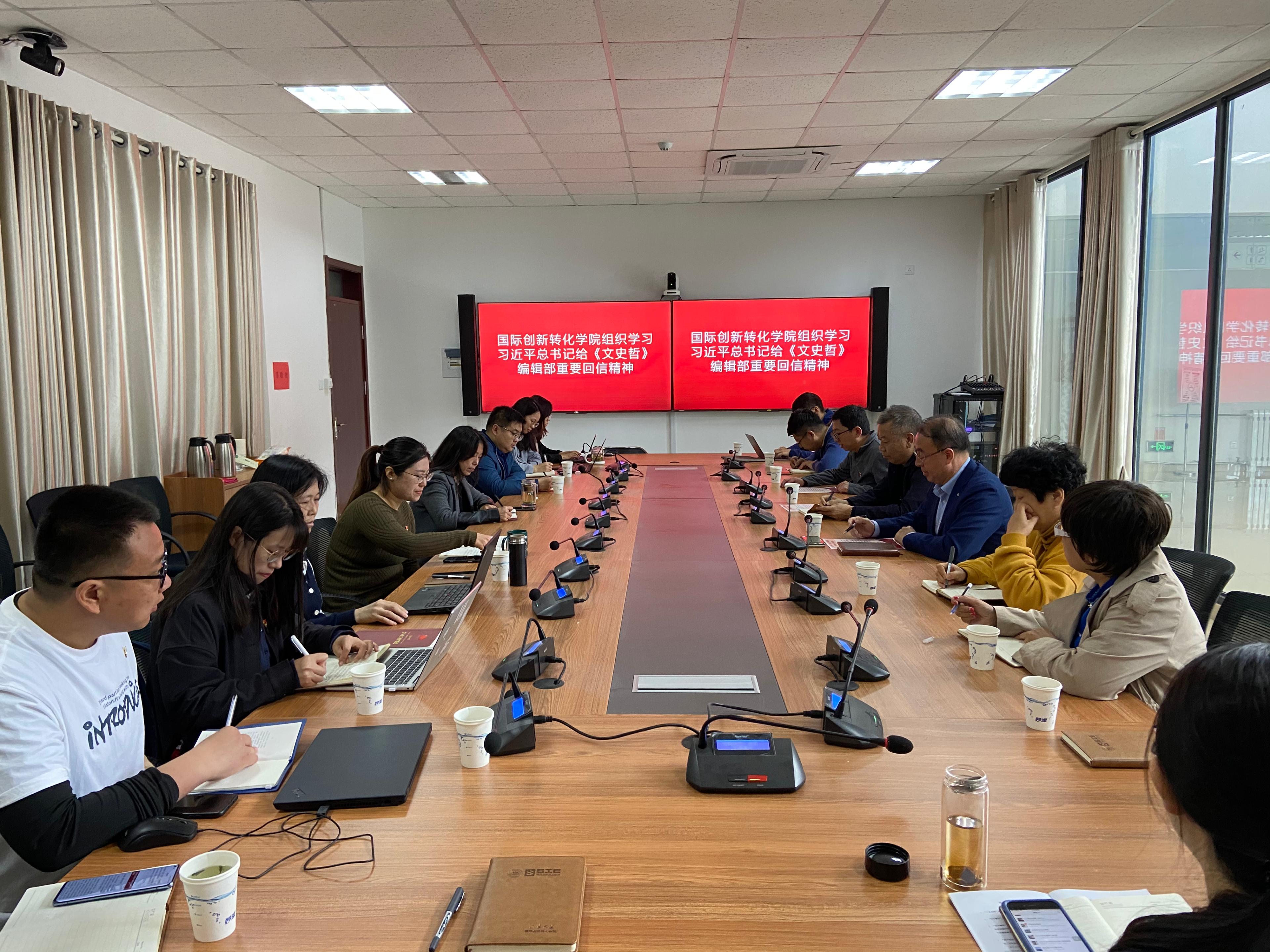 陈志军高度赞赏编辑部工作人员严谨、认真的工作作风,要求大家将回信精神内化于心、外化于行,服务国家战略,聚焦创新转化学科发展,创造性和创新性地开展工作,为学院发展和新文科建设作出贡献。乔岳传达了学校党委、校区党工委有关部署要求,要求大家提高政治站位,切实以重要回信精神为指引,不断提高政治判断力、政治领悟力和政治执行力。