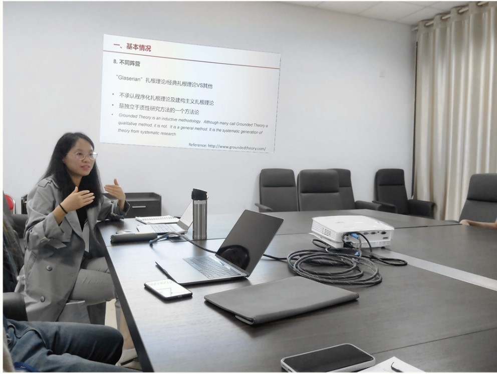 助理研究员刘莎莎老师以“扎根理论“”为主题进行了学习分享,十多名教职工通过线上和线下相结合的方式参加了此次交流活动。