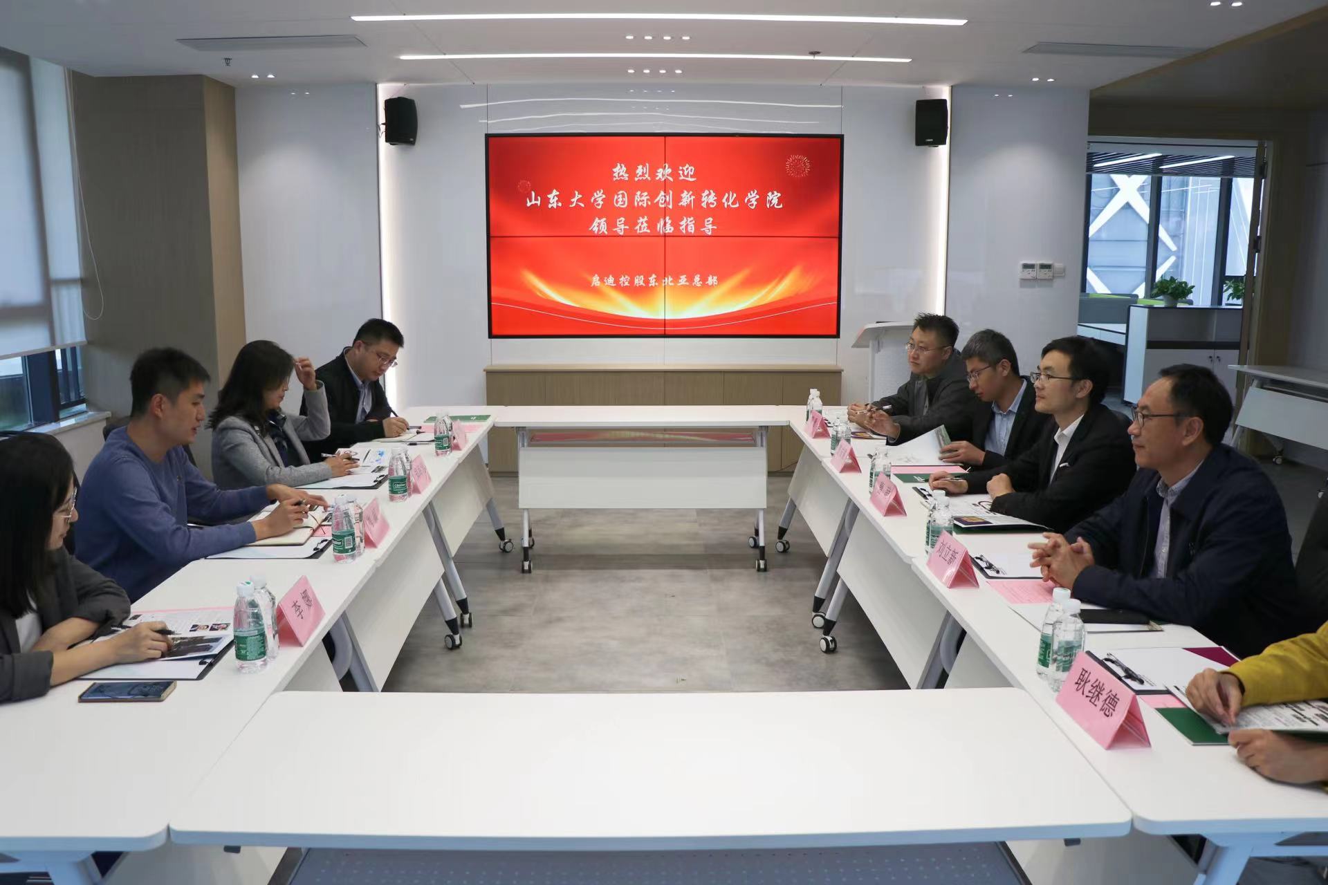院长助理刘振,办公室主任、EDP中心主任郑海涛一行四人参访启迪控股东北亚总部,就孵化器合作运营、科技成果转化、创新创业人才培养等方面进行交流。启迪控股东北亚总部副总裁曹萌,总裁助理刘立新参加座谈。