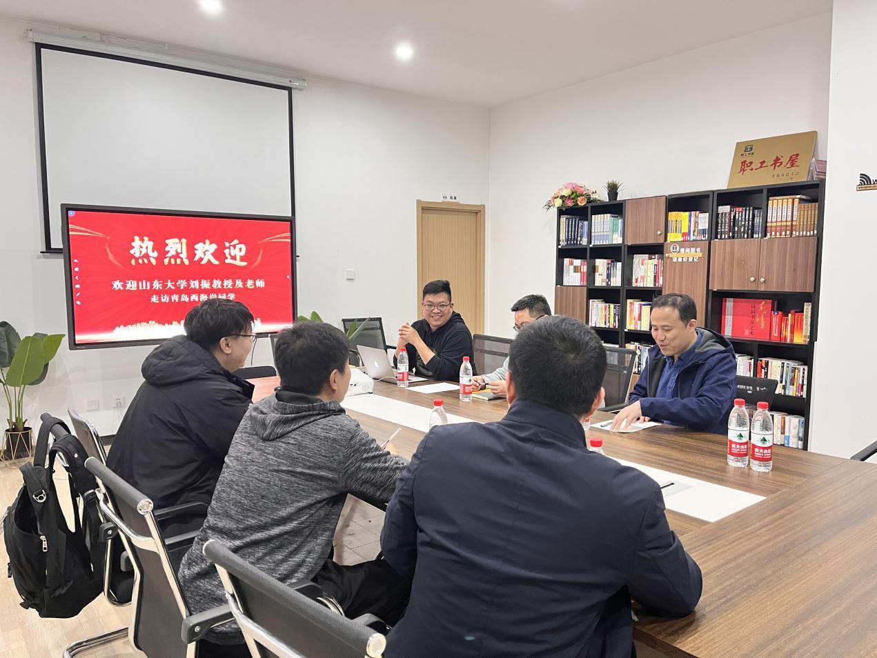 校友会活动点,与青岛杜亿特贸易有限公司总经理时明,青岛鑫江汇国际贸易有限公司总经理王上嘉以及青岛思佰德数字科技有限公司副总经理、青岛西海岸新区服务贸易协会秘书长郝翀,围绕“数字化转型对民营企业价值输出的影响”“企业服务平台对民营企业的助推作用”等主题进行深入沟通与交流。