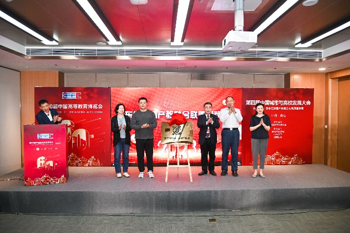 在联盟启动仪式环节,首先,来自胶东经济圈五市的教育部门领导青岛市教育局副局长姜林、日照市教育局副局长王海峰、潍坊市委教育工委副书记韩光福、烟台市教育局副局长张丽、威海市教育局调研员张锐共同为联盟揭牌。