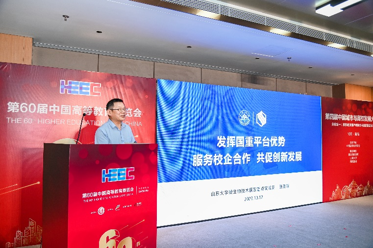 微生物技术研究院(国家重点实验室)院长(主任)、教授张友明为论坛作了题为“发展国重平台优势,服务校企合作、共促创新发展”的讲座。
