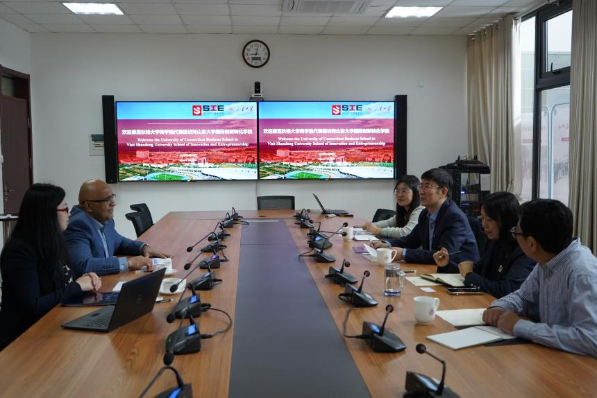 韩圣浩对代表团来访表示欢迎,并简要介绍了学院发展近况及国际合作战略和具体举措。他提到,国创学院由剑桥大学参与共建,一直以来重视与全球一流高校和学院建立联系和深化合作,学院与康涅狄格大学商学院在人才培养、学科建设、科技创新等方面有很多共通之处,希望两院能积极开展师生互访,深化合作内容,进一步拓展合作领域。Jose M. Cruz就康涅狄格商学院基本情况、研究生专业、暑期学校、国际学生招生等方面进行了介绍,他希望未来双方开展更为频繁的交流与互动。双方就师生互访、联合培养、科研合作等方面达成了共识和合作意向,并就具体细节充分进行了研讨。