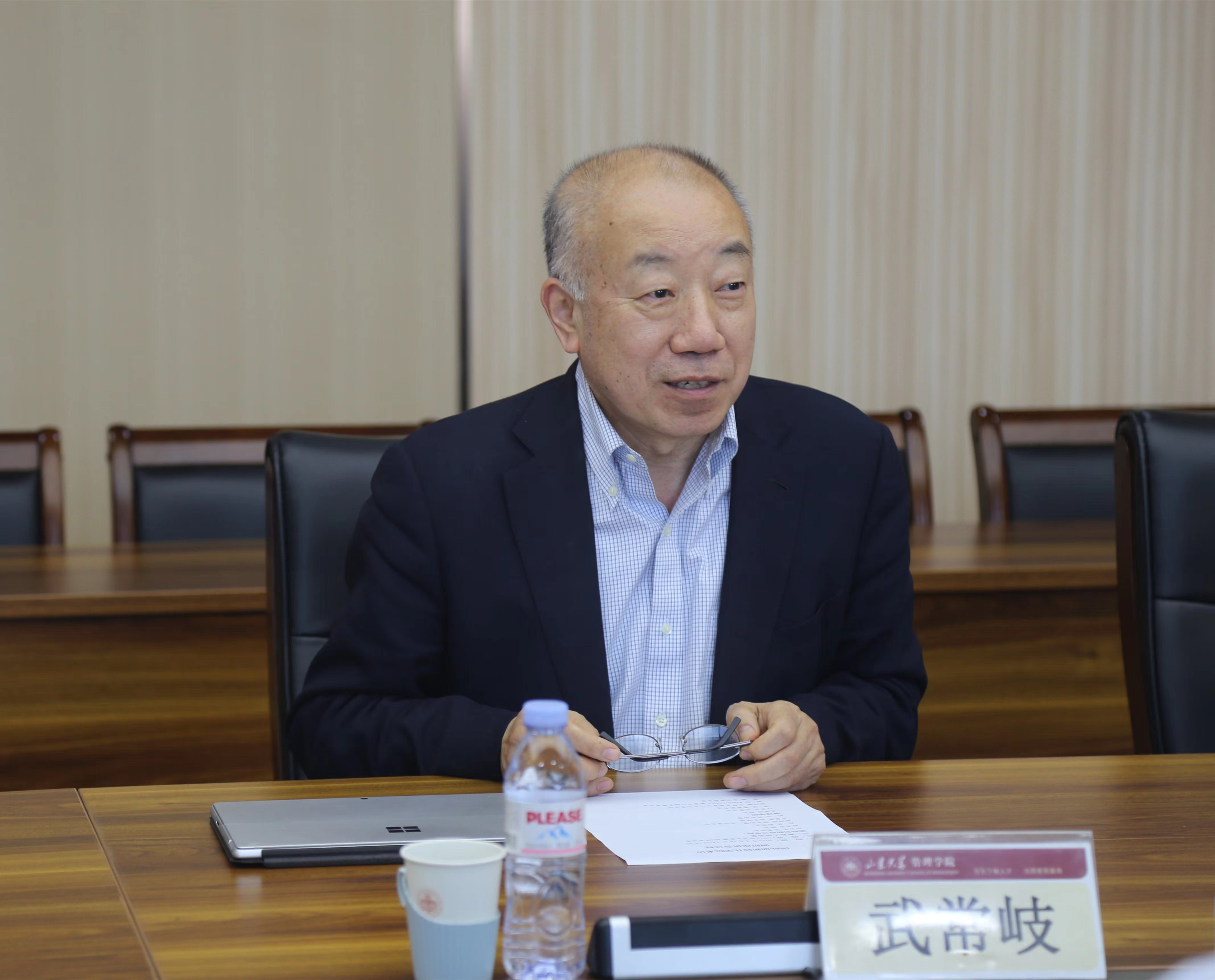 武常岐对国创学院一行的到访表示热烈欢迎,并简要介绍了管理学院的基本情况。他提到,今年是学校实现“十四五”规划的关键一年,管理学院将全面推动各项工作提档升级。管理学院将继续大力推进学科交叉融合,进一步推进与国创学院在学生培养、学术研究、学科共建等方面的协同发展。付岩志谈到,管理学院以“弘扬中国管理思想,建设根植齐鲁、服务中国、影响世界的一流管理学院”为愿景,统筹兼顾、精耕细作,学科设置和人才培养体系日臻完善,学院各项事业取得了新进步。两个学院作为管理学科重要组成部分,期待在互学互鉴中合作共赢,以新高度新成绩全力推进学校管理学科“双一流”高质量建设。