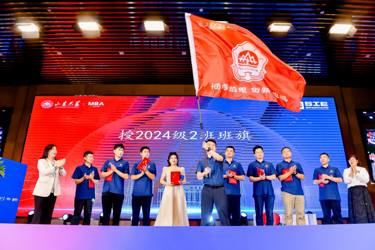 为了表彰班委成员为班级所作出的贡献,MBA青岛教学点主任陈卓与MBA2024级2班班主任周扬艳为班委成员颁发班委聘书,并举行授旗仪式。