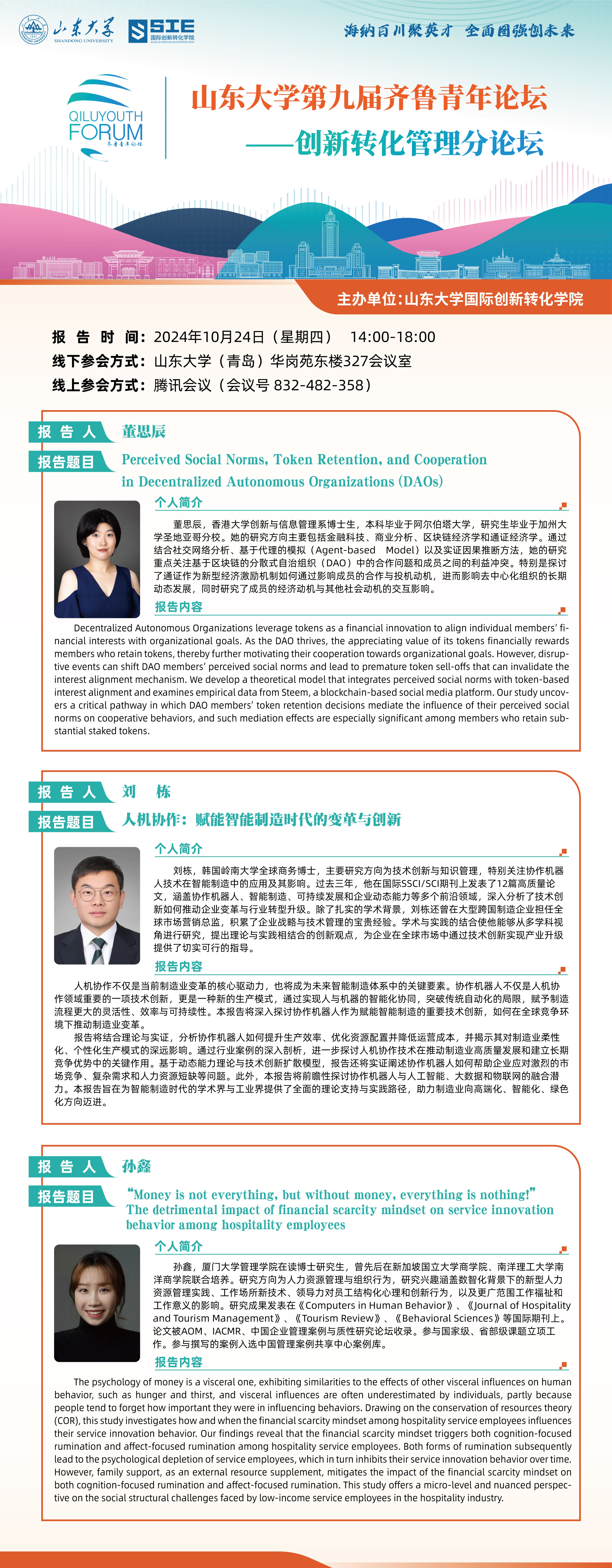 欢迎参加第九届齐鲁青年论坛之创新转化管理分论坛