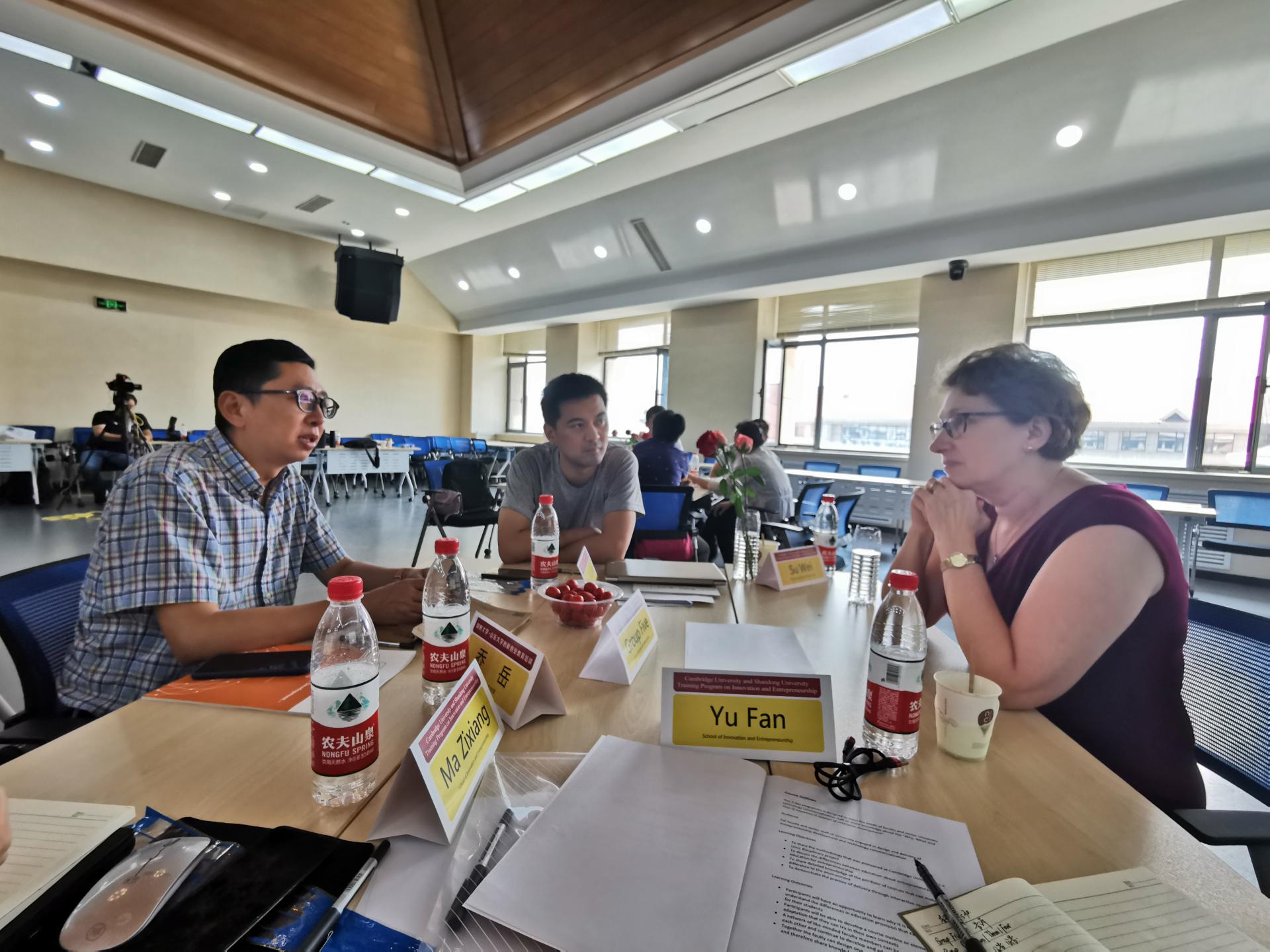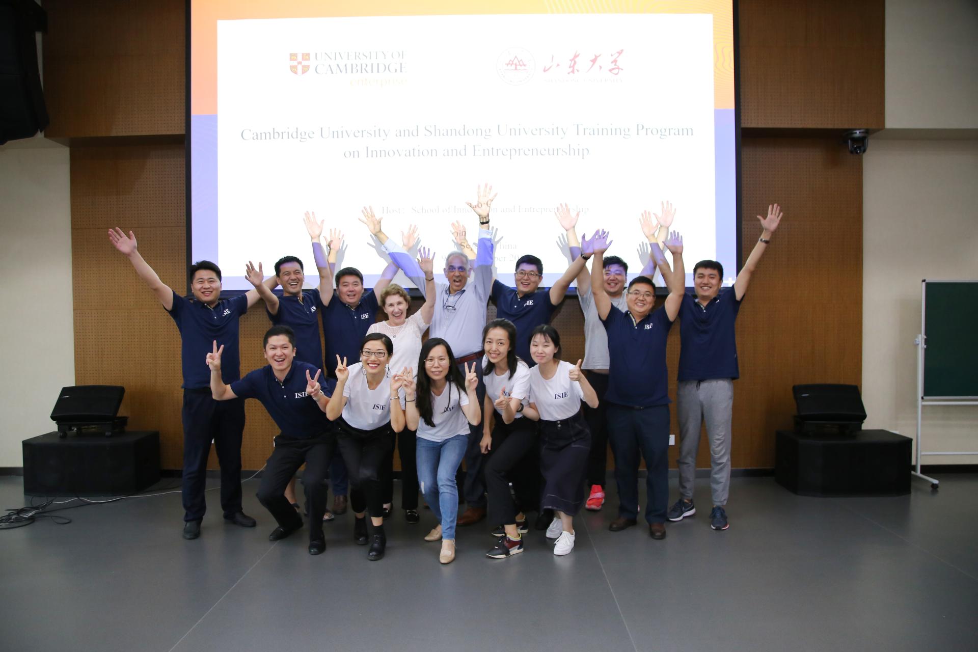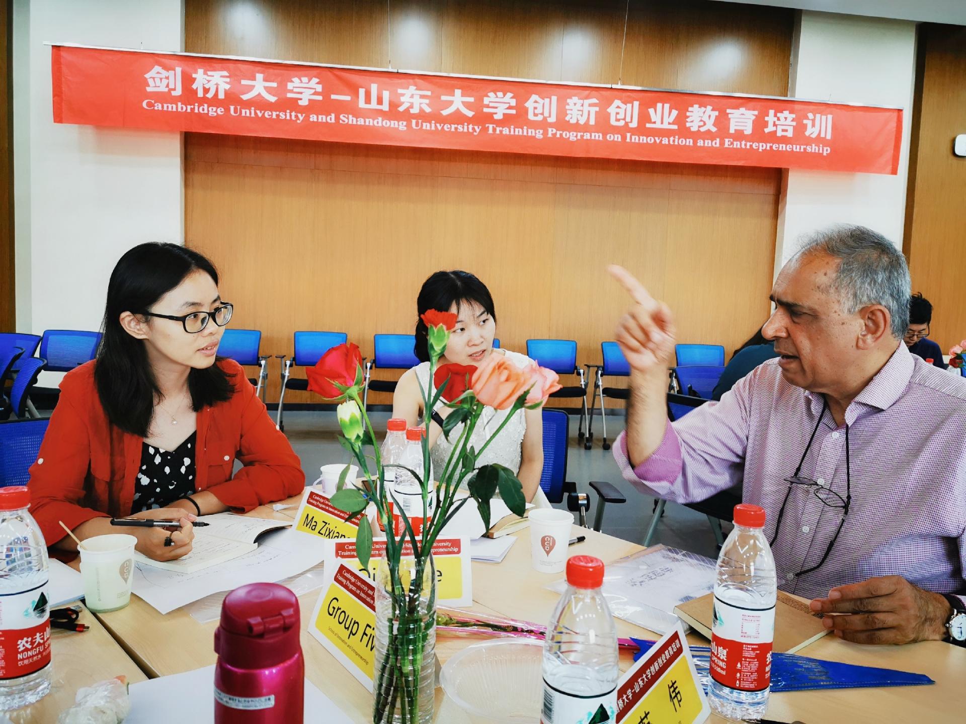 创新创业教育培训班”在青岛校区华岗苑北楼五层报告厅举行。剑桥大学Judge商学院创新教育中心Shailendra Vyakarnam教授、剑桥大学剑桥企业中心国际关系与拓展部负责人Shirley Jamieson女士共同授课。学校党委副书记、青岛校区党工委书记张永兵、青岛校区党工委副书记郭邦礼参加相关活动。