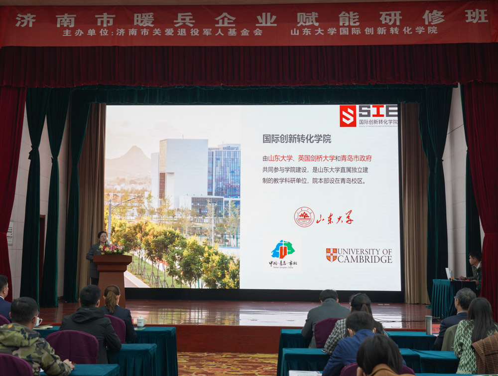 在进行学科建设、人才培养、创新生态系统建设等工作的同时,不忘服务地方、回馈社会。从2021年起,学院就与济南市关爱退役军人基金会建立了良好的合作关系。此次研修班,学院用知识赋能暖兵企业,助力暖兵企业高质量发展,为地方经济发展贡献自己的力量。