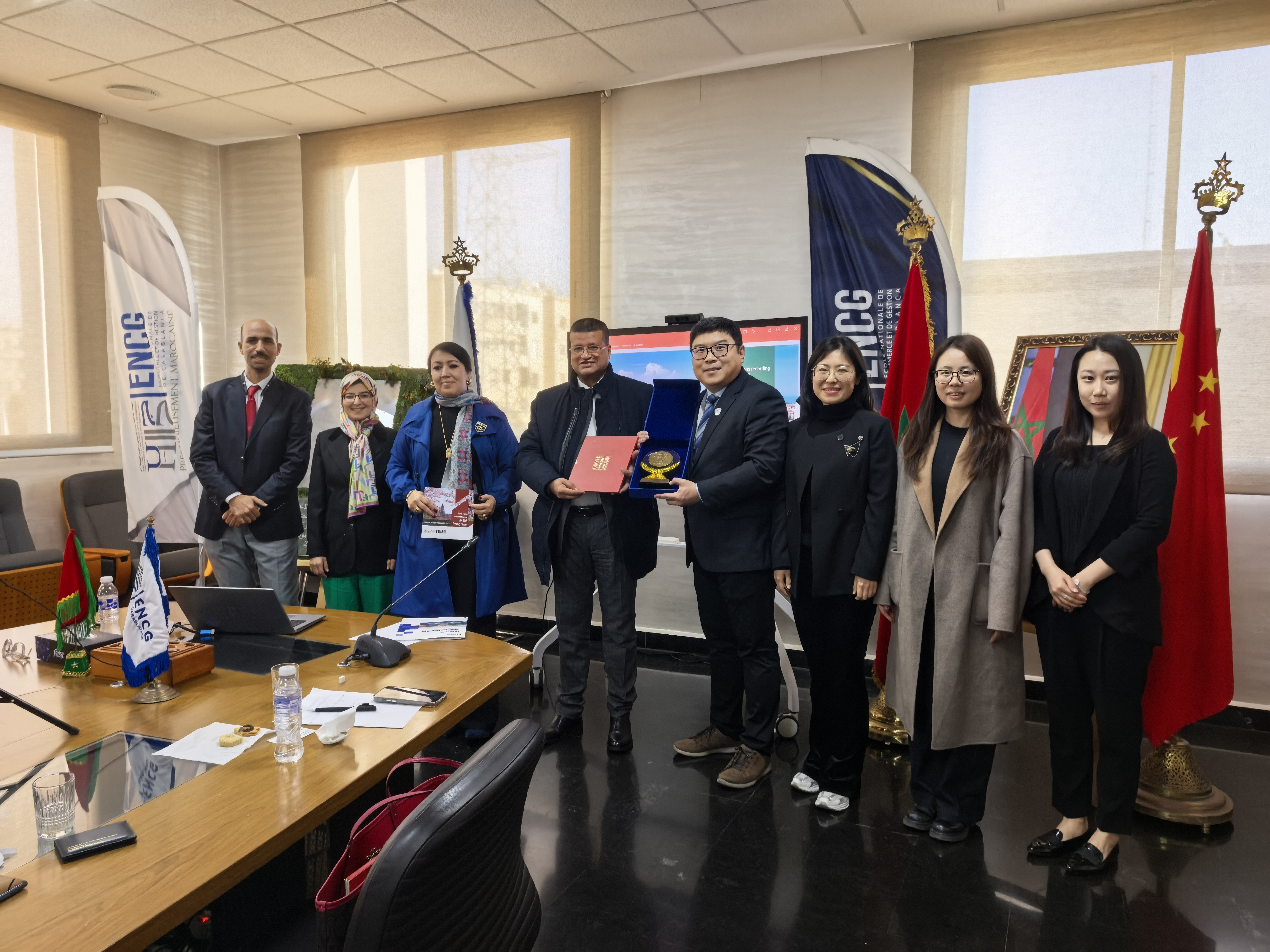 随后,代表团与海信集团北非办事处傅秋铎经理进行了工作交流,并拜会了摩洛哥中资企业协会。大家围绕国际化人才培养模式、学生实习就业,以及高校如何为中资企业海外发展提供智力支撑与人才保障等方面展开了务实讨论。此次交流加深了学院对海外中资企业人才需求的了解,为学院开展产教融合下的国际学生高质量培养模式建设开拓了渠道。